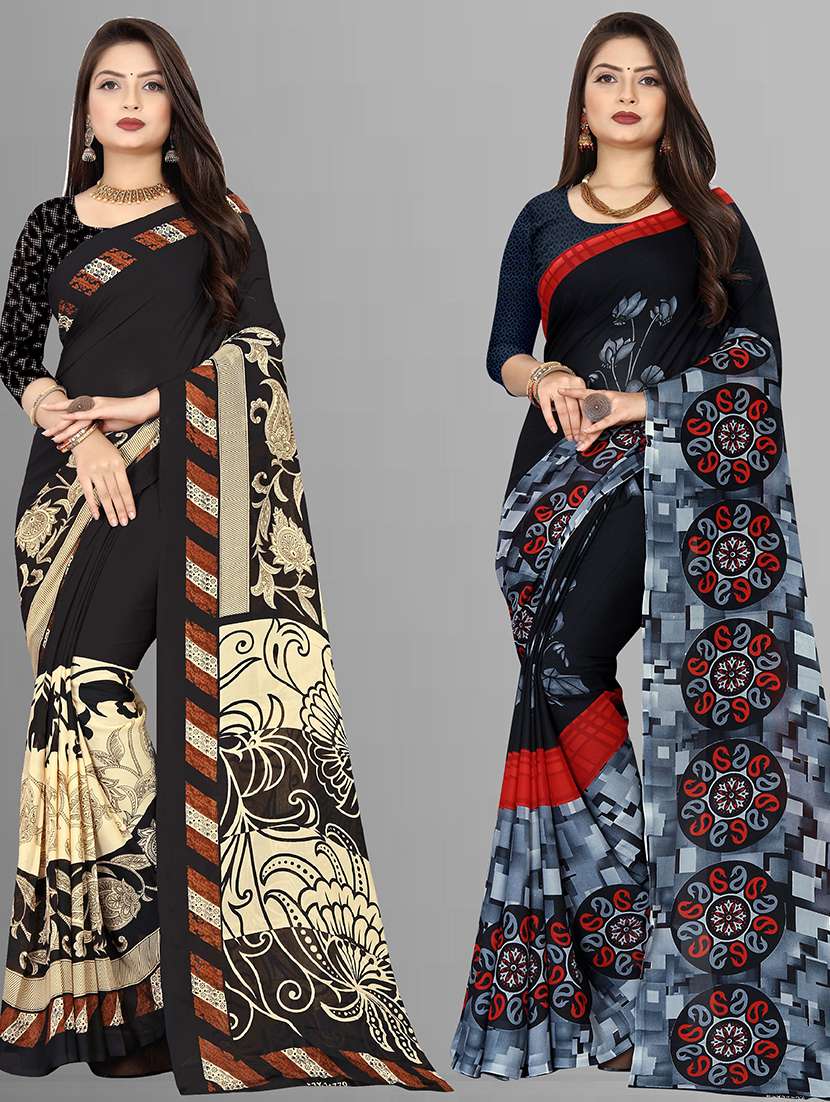 women pack of 2 casual wear combo sarees with blouse