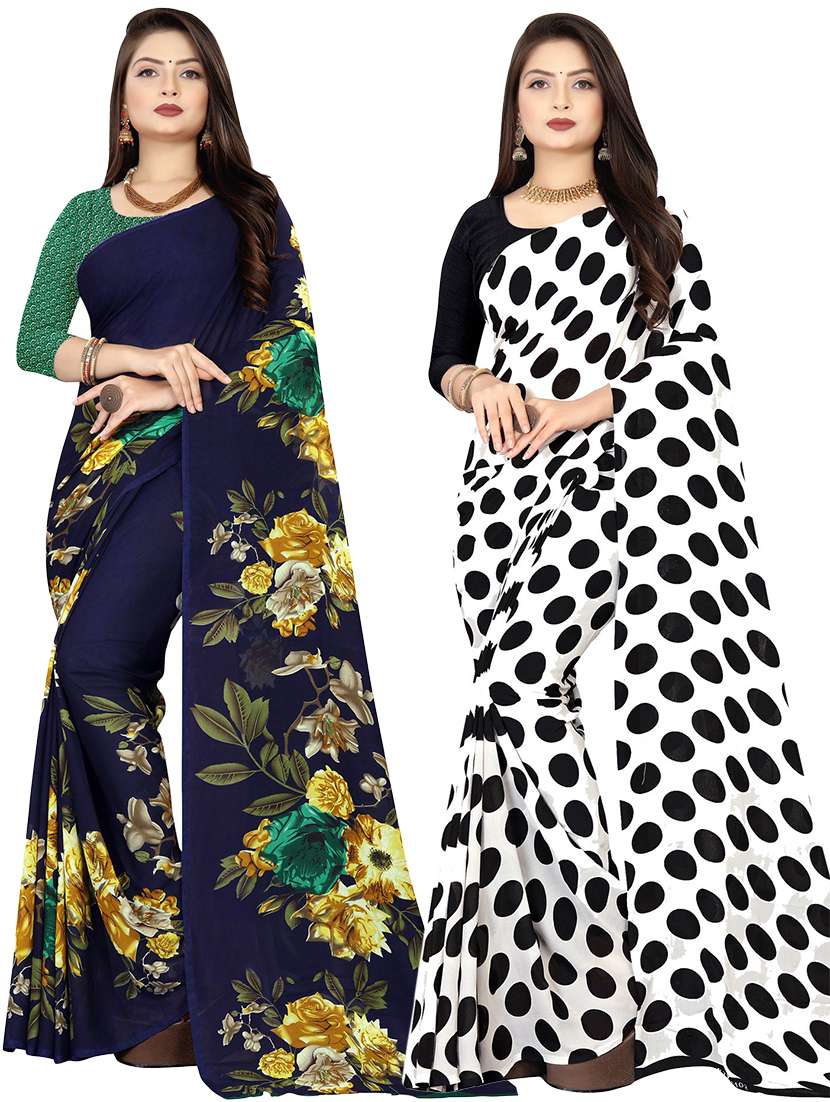 women pack of 2 casual wear combo sarees with blouse - 21476389 - Very Small Image - 1