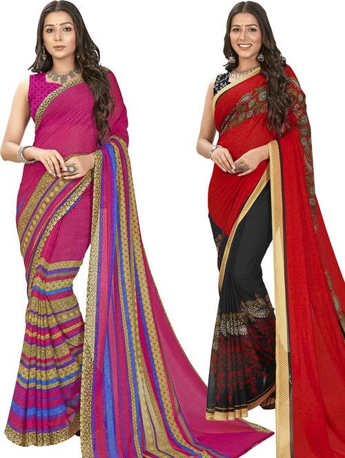 women pack of 2 casual wear combo sarees with blouse - 21476419 - Very Small Image - 1