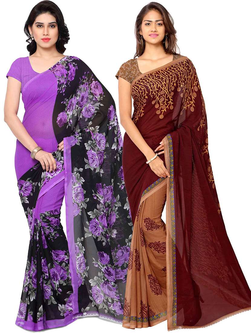 women pack of 2 casual wear combo sarees with blouse