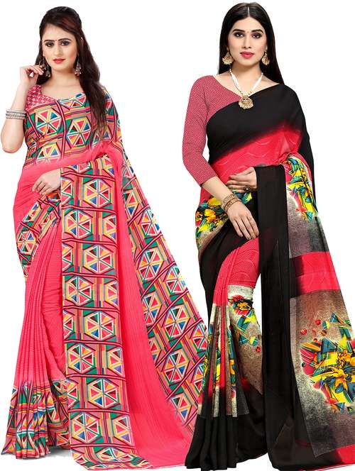 women pack of 2 casual wear combo sarees with blouse - 21476461 -  Standard Image - 1 women pack of 2 casual wear combo sarees with blouse - 21476461 -  Zoom Image - 1