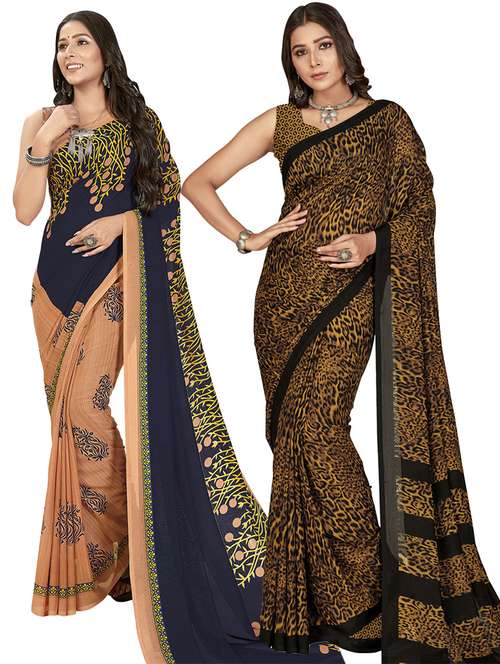 women pack of 2 casual wear combo sarees with blouse - 21476552 - Very Small Image - 1