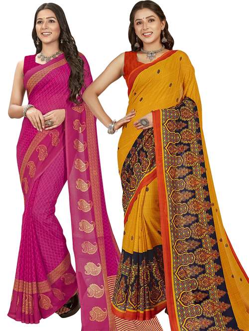 women pack of 2 casual wear combo sarees with blouse - 21476563 - Very Small Image - 1