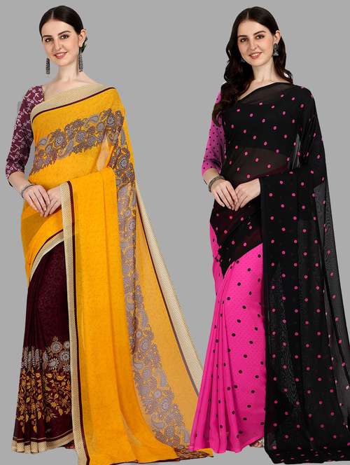 women pack of 2 casual wear sarees with blouse