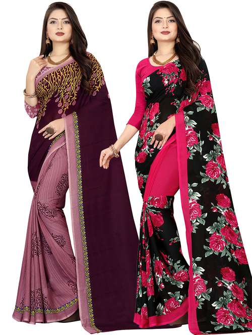 women pack of 2 casual wear combo sarees with blouse - 21476778 - Very Small Image - 1