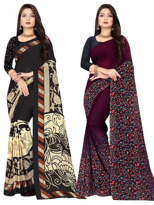 women pack of 2 casual wear combo sarees with blouse - 21476844 - Very Small Image - 1