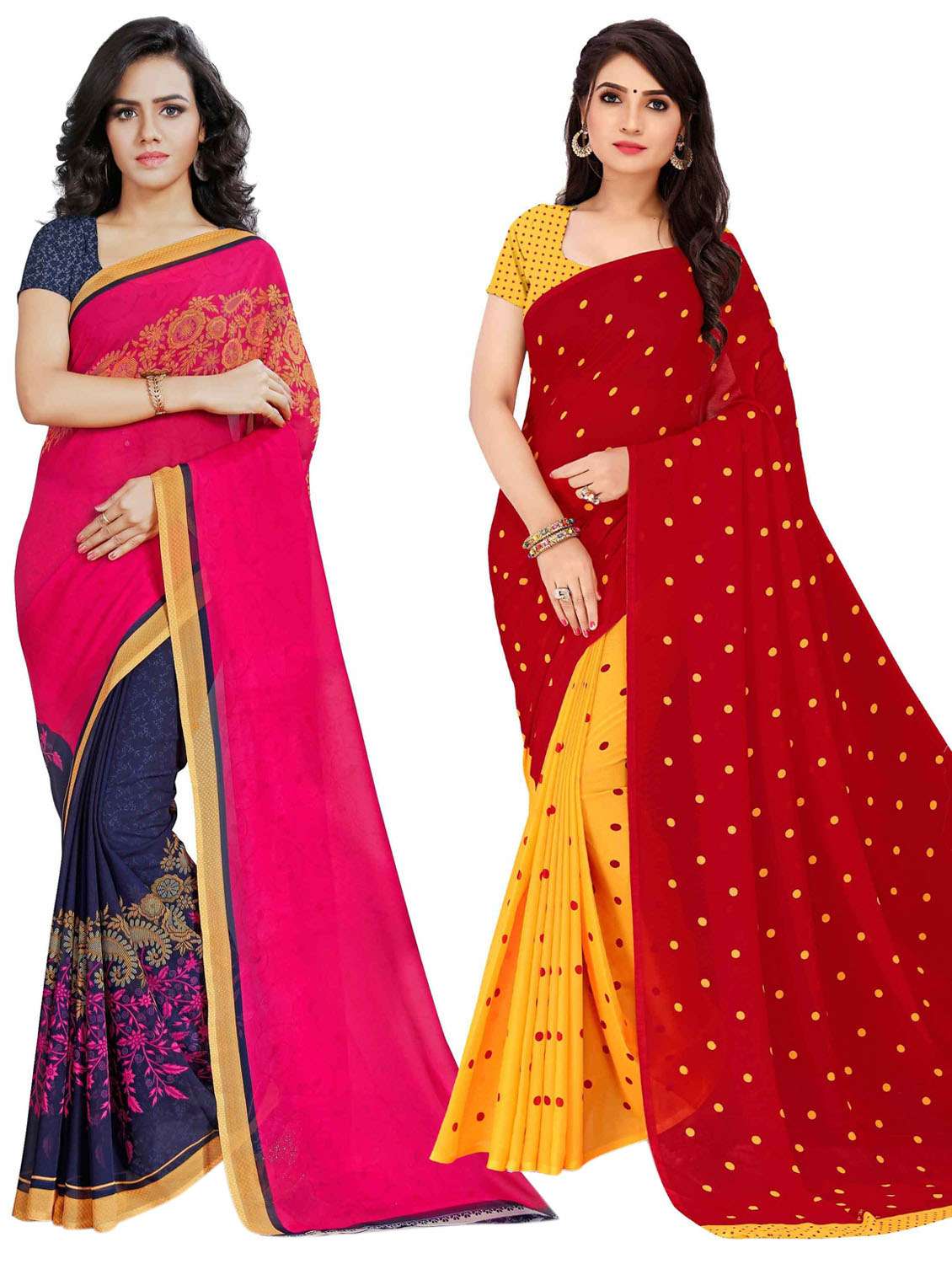 pack of 2 printed casual wear sarees with blouse - 21476875 - Very Small Image - 1