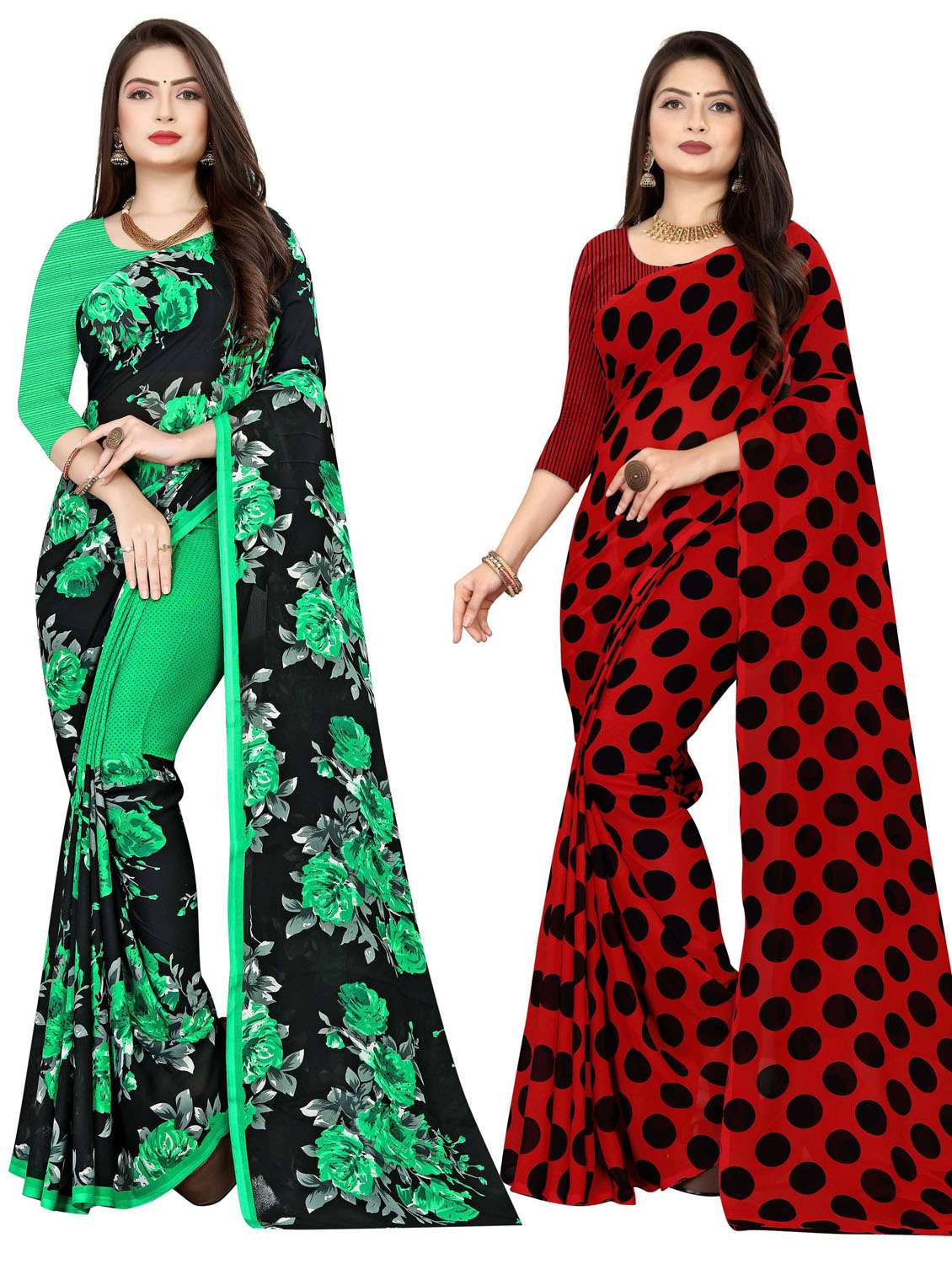 pack of 2 printed casual wear sarees with blouse