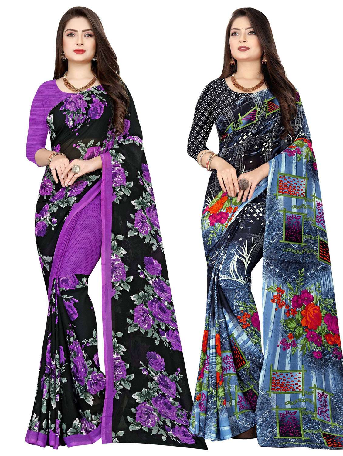 women pack of 2 casual wear combo sarees with blouse - 21476911 - Very Small Image - 1