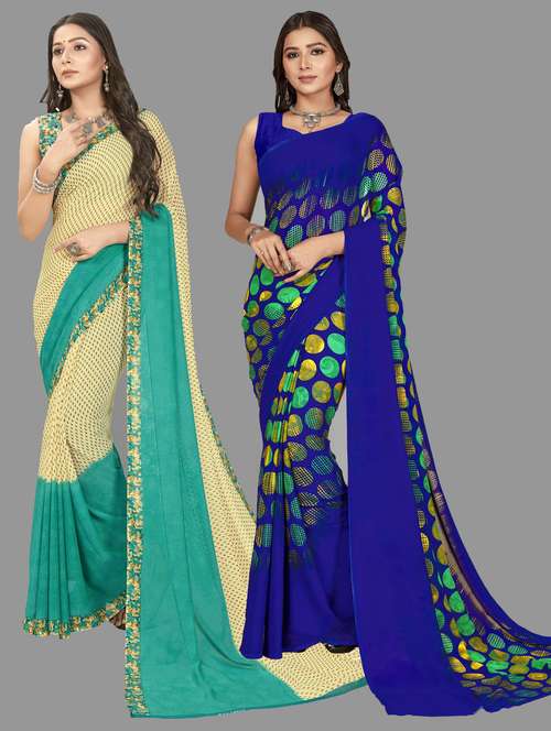 pack of 2 printed casual wear sarees with blouse - 21476923 - Very Small Image - 1