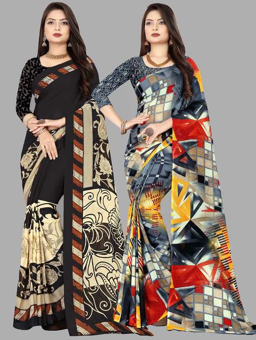women pack of 2 casual wear combo sarees with blouse - 21477000 - Very Small Image - 1