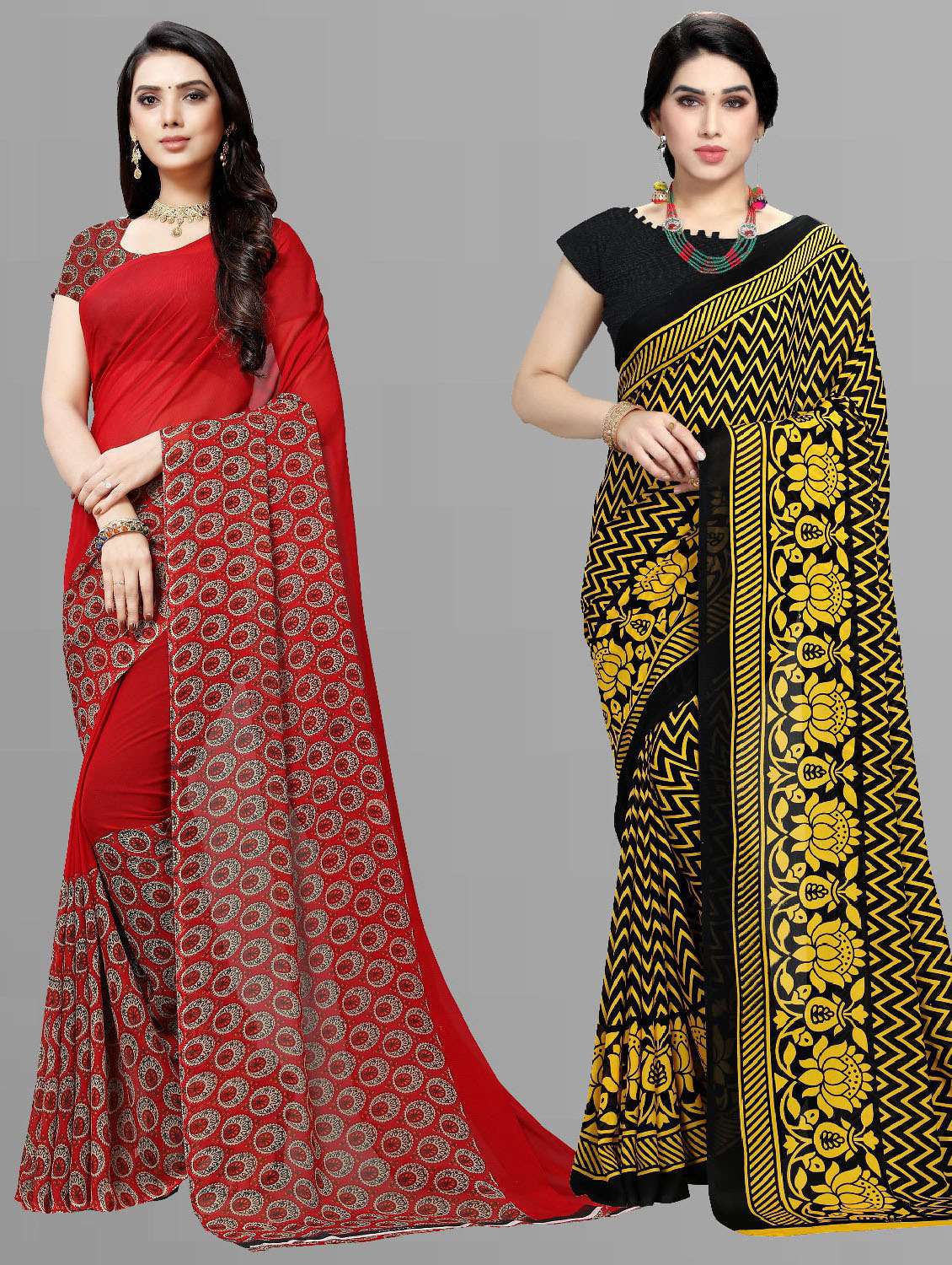 women pack of 2 casual wear combo sarees with blouse
