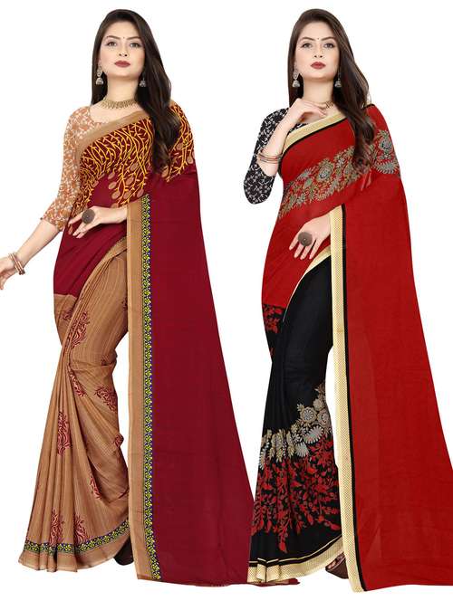 women pack of 2 casual wear combo sarees with blouse