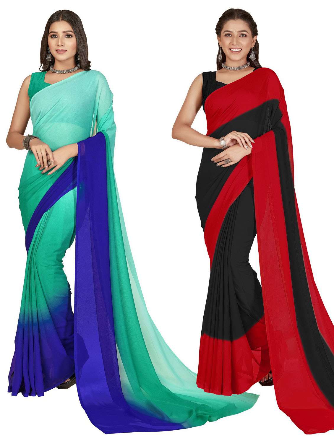 women pack of 2 casual wear combo sarees with blouse