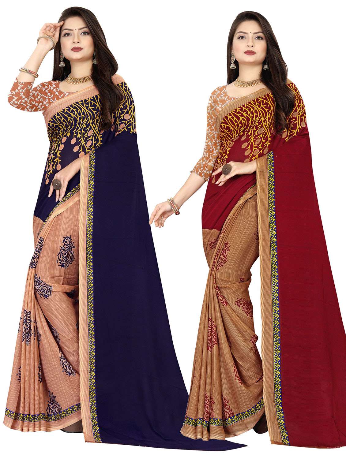 women pack of 2 printed casual wear saree with blouse - 21477057 - Very Small Image - 1