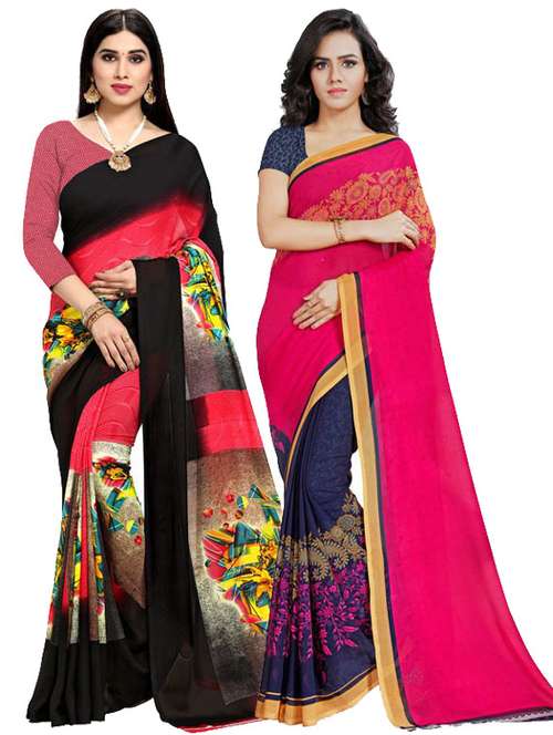 pack of 2 printed casual wear sarees with blouse - 21477086 - Very Small Image - 1