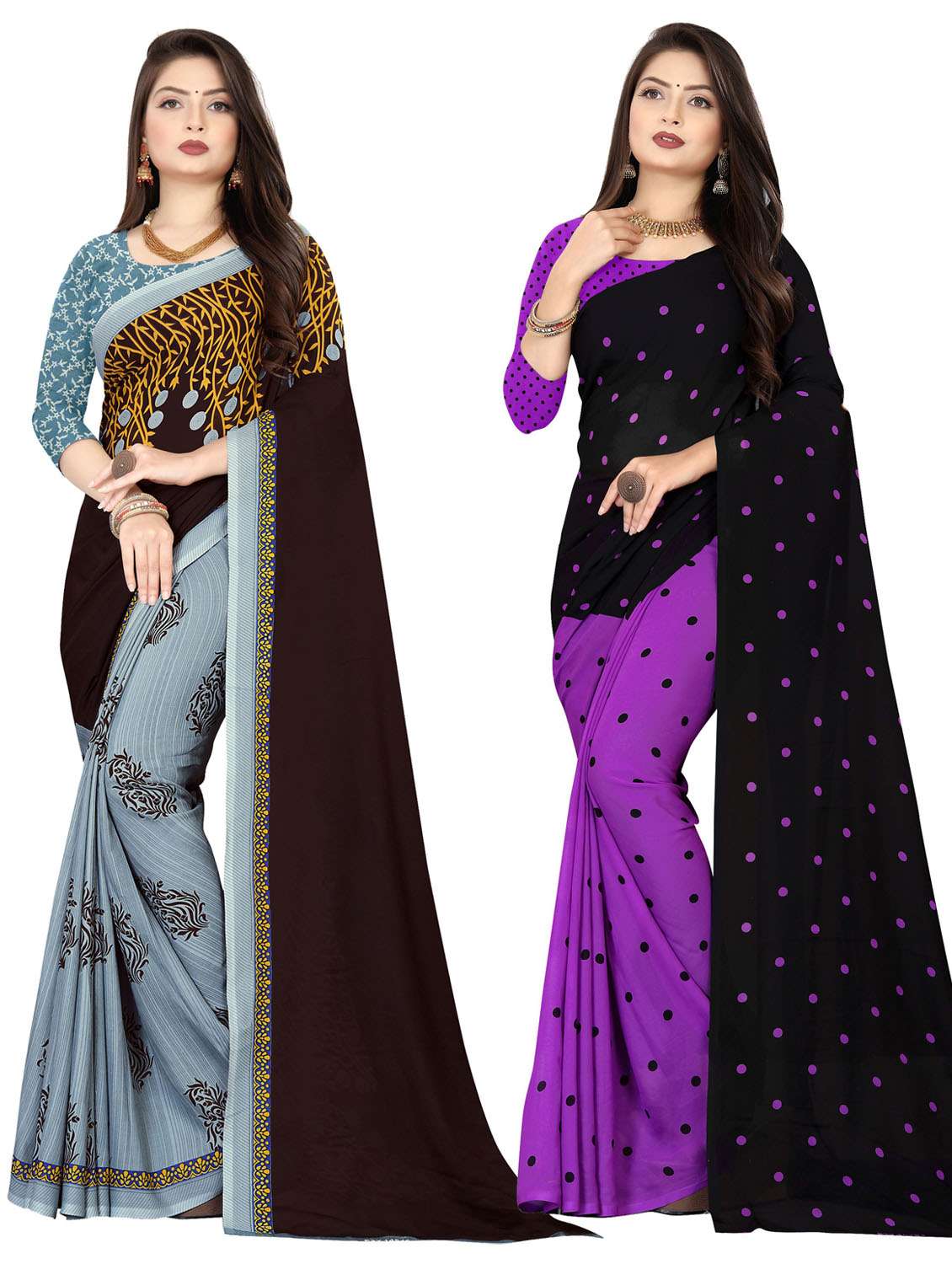 women pack of 2 casual wear combo sarees with blouse - 21477121 - Very Small Image - 1