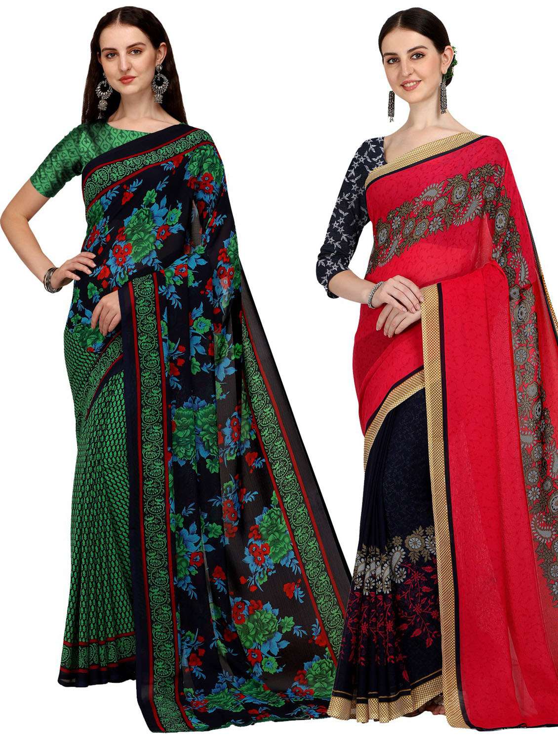 women pack of 2 casual wear combo sarees with blouse