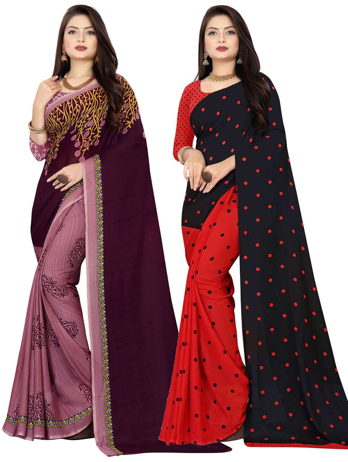 women pack of 2 casual wear sarees with blouse - 21477232 - Very Small Image - 1