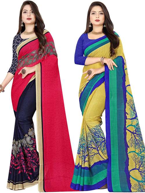 women pack of 2 casual wear combo sarees with blouse - 21477341 -  Standard Image - 1 women pack of 2 casual wear combo sarees with blouse - 21477341 -  Zoom Image - 1