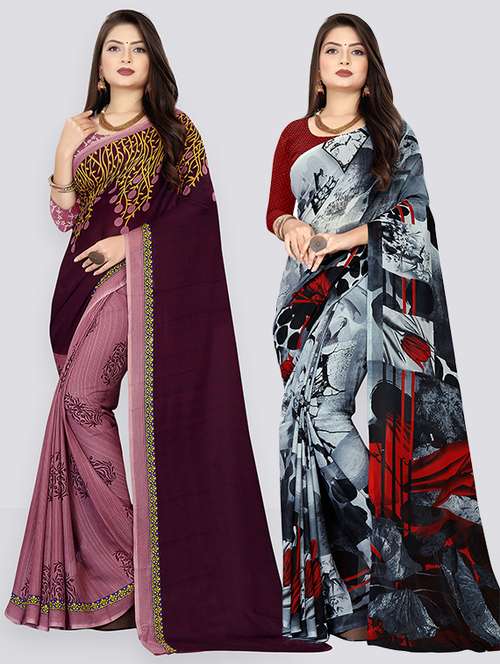 women pack of 2 casual wear combo sarees with blouse - 21477435 - Very Small Image - 1