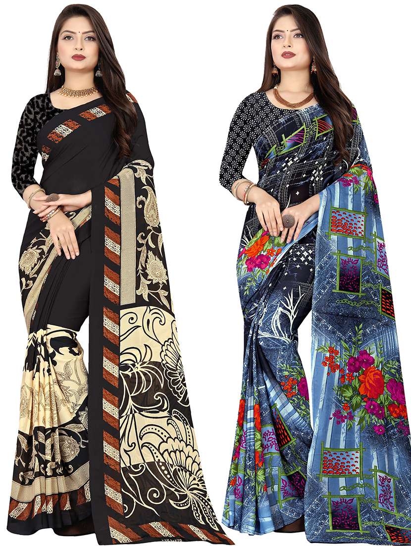 women pack of 2 casual wear combo sarees with blouse - 21477476 - Very Small Image - 1