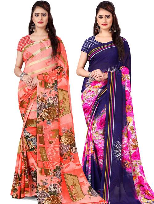 women pack of 2 casual wear combo sarees with blouse - 21477485 - Very Small Image - 1