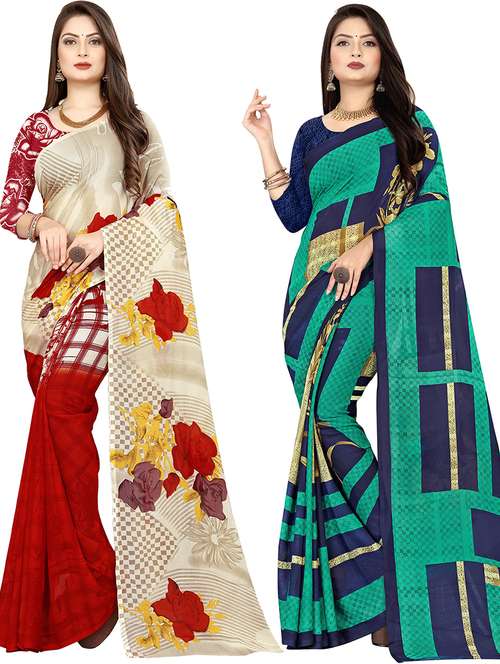 women pack of 2 casual wear combo sarees with blouse