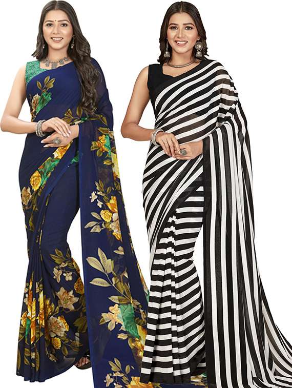 women pack of 2 printed casual wear saree with blouse