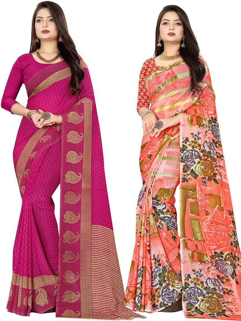 women pack of 2 printed casual wear saree with blouse - 21477563 - Very Small Image - 1