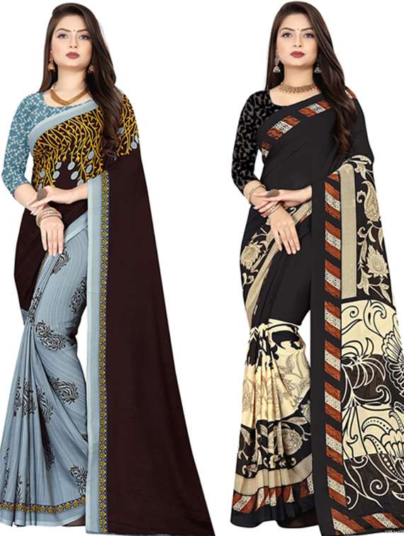 women pack of 2 printed casual wear saree with blouse