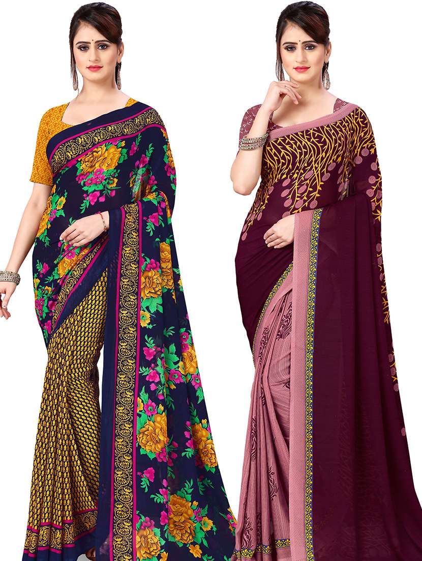 women pack of 2 casual wear combo sarees with blouse