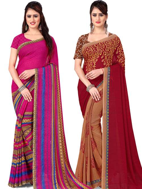 women pack of 2 casual wear combo sarees with blouse