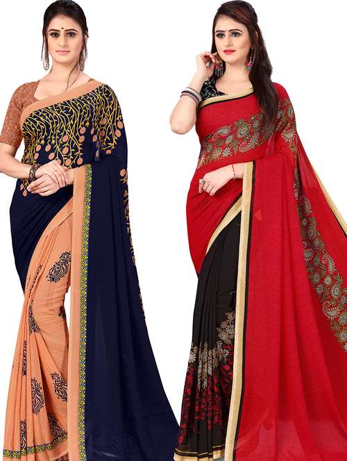 women pack of 2 casual wear combo sarees with blouse - 21477744 - Very Small Image - 1