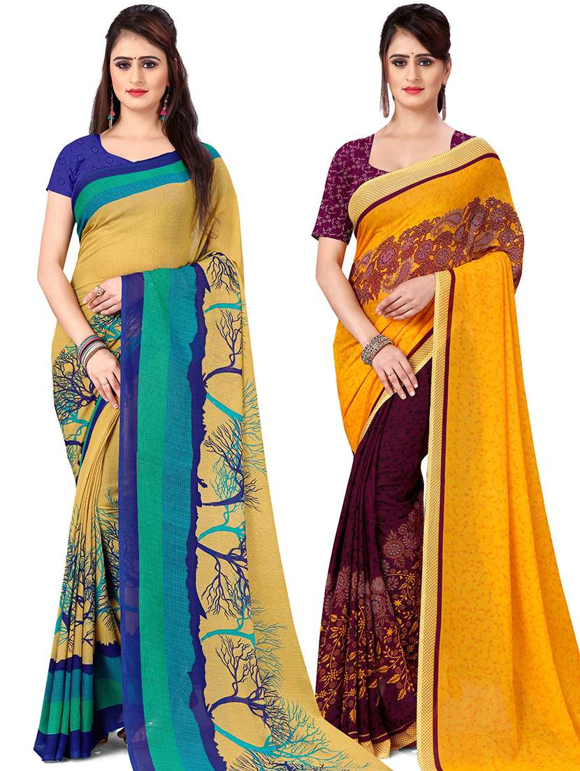 women pack of 2 casual wear sarees with blouse