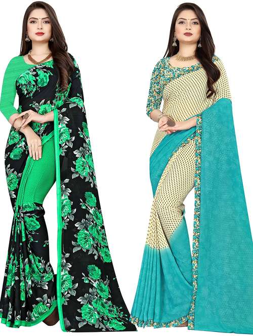 women pack of 2 printed casual wear saree with blouse - 21477795 - Very Small Image - 1