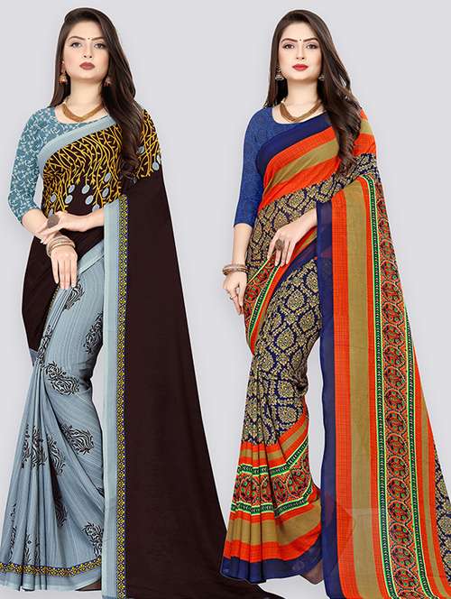 women pack of 2 casual wear sarees with blouse