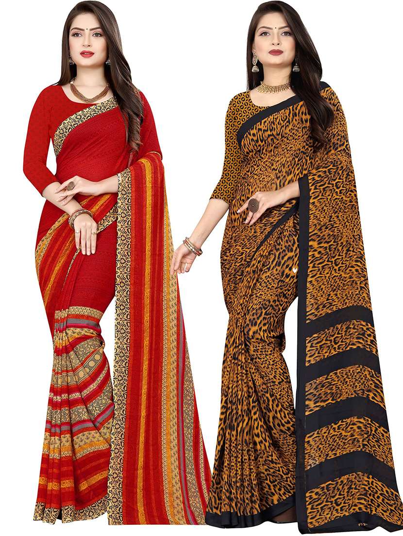 women pack of 2 casual wear sarees with blouse