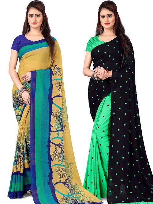 women pack of 2 casual wear sarees with blouse - 21477835 - Very Small Image - 1