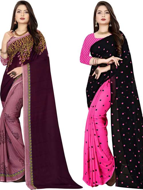 women pack of 2 casual wear combo sarees with blouse