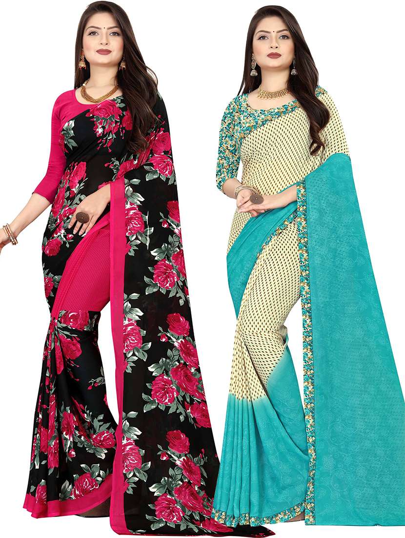 women pack of 2 casual wear sarees with blouse