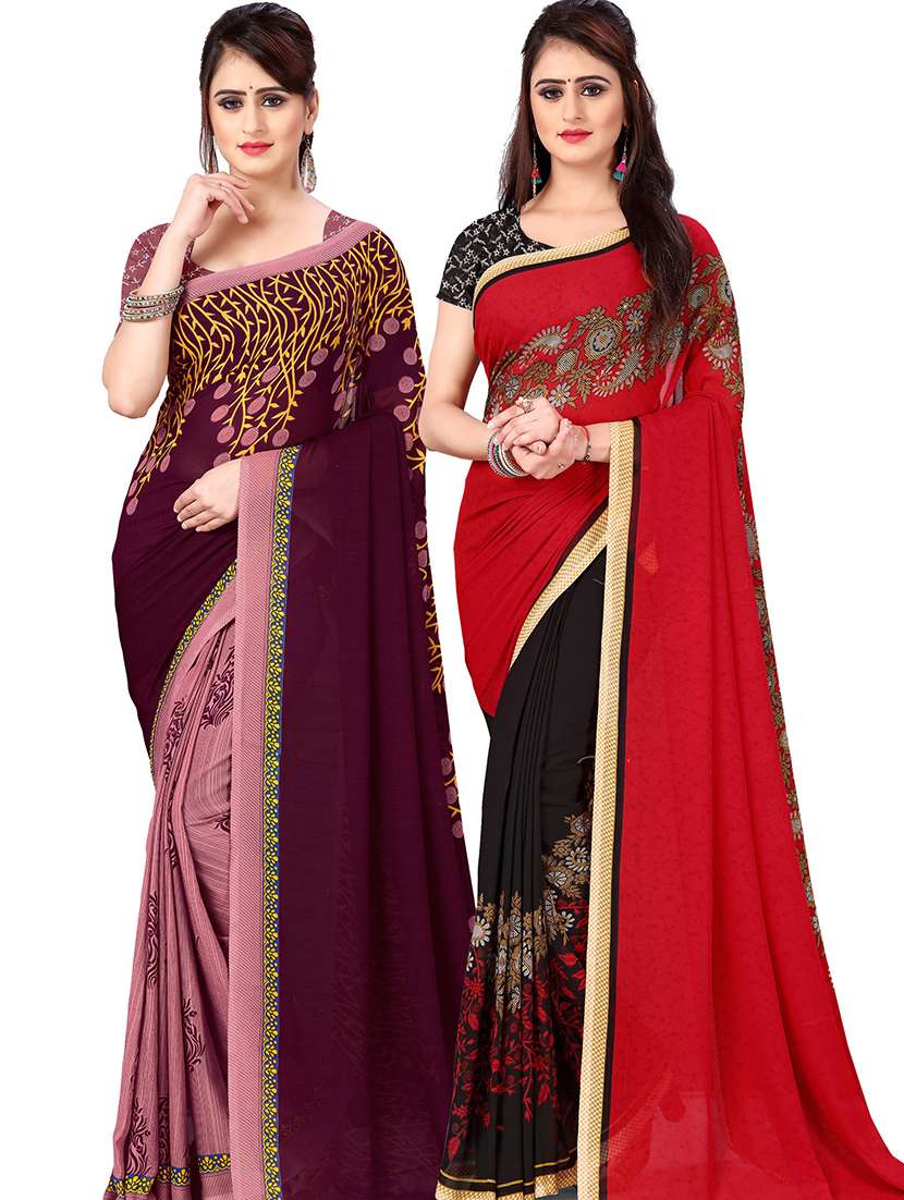 women pack of 2 casual wear combo sarees with blouse - 21477915 - Very Small Image - 1