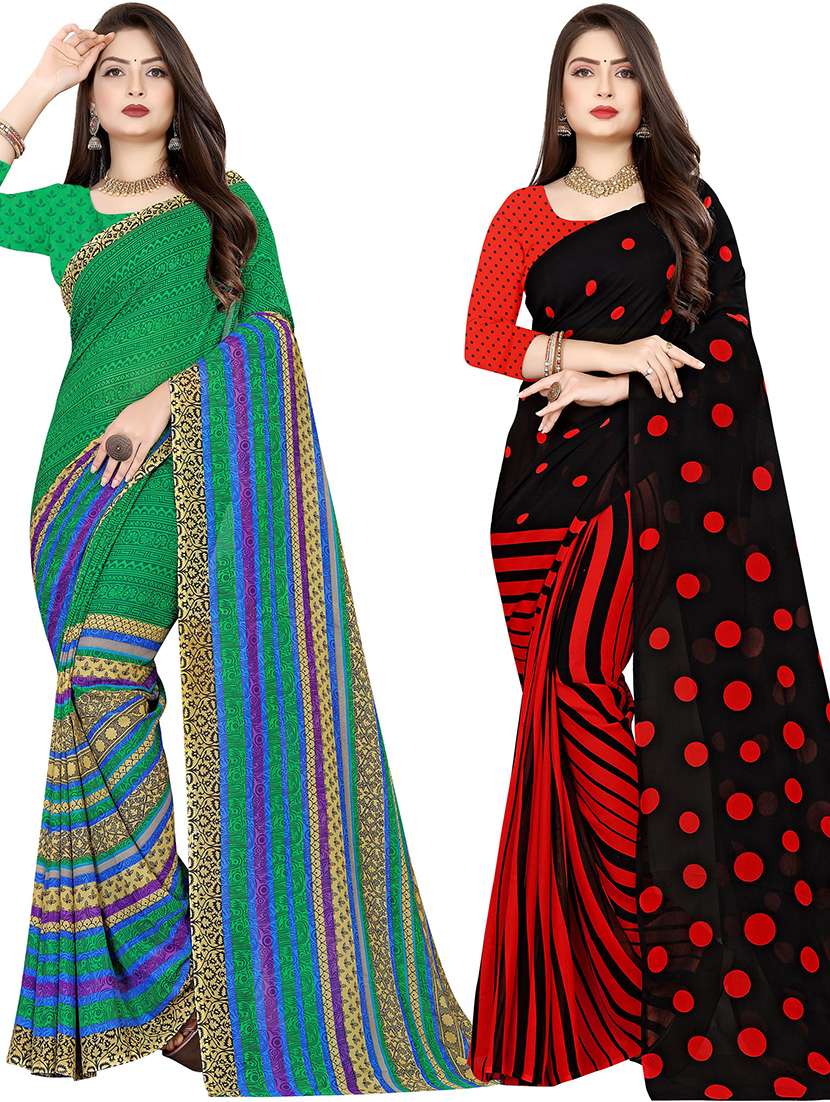 women pack of 2 casual wear combo sarees with blouse