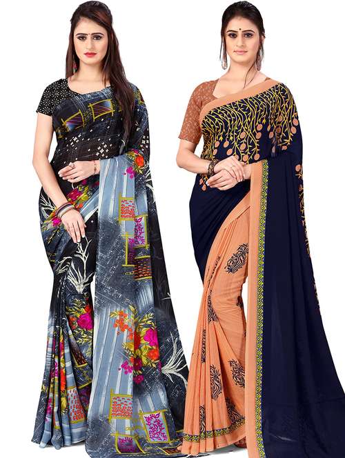 women pack of 2 casual wear combo sarees with blouse