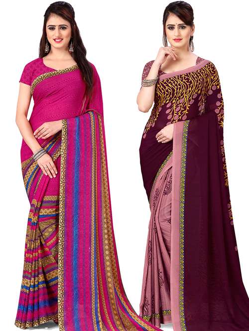 women pack of 2 casual wear combo sarees with blouse
