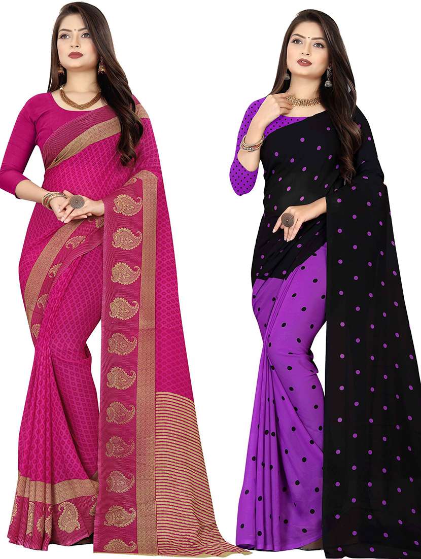 women pack of 2 casual wear combo sarees with blouse - 21477997 - Very Small Image - 1