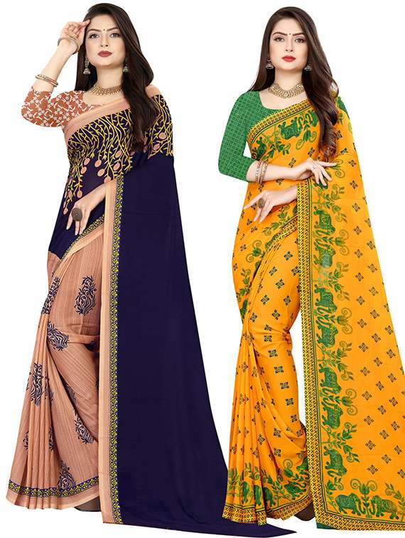 women pack of 2 casual wear combo sarees with blouse
