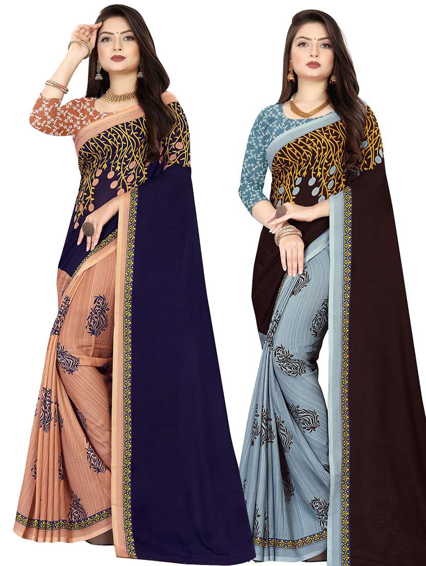 women pack of 2 casual wear combo sarees with blouse