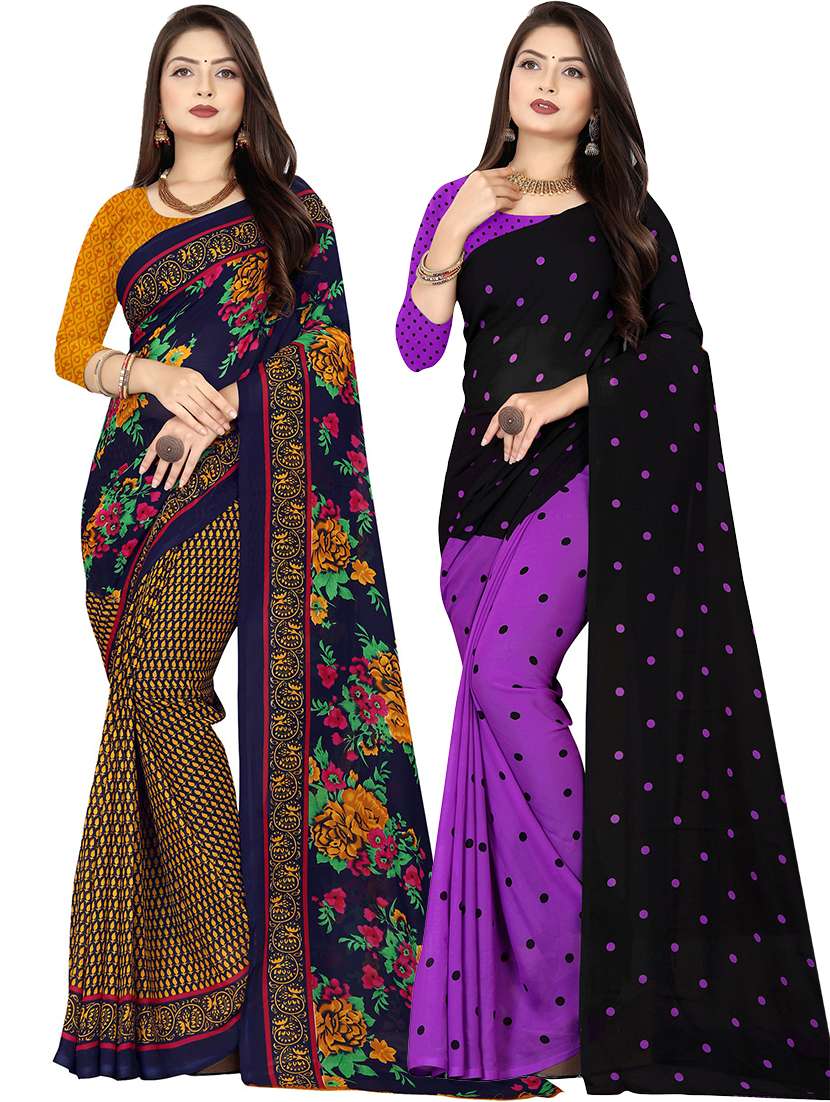 women pack of 2 casual wear combo sarees with blouse