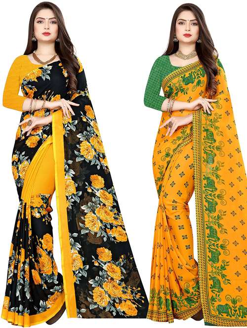 women pack of 2 casual wear combo sarees with blouse